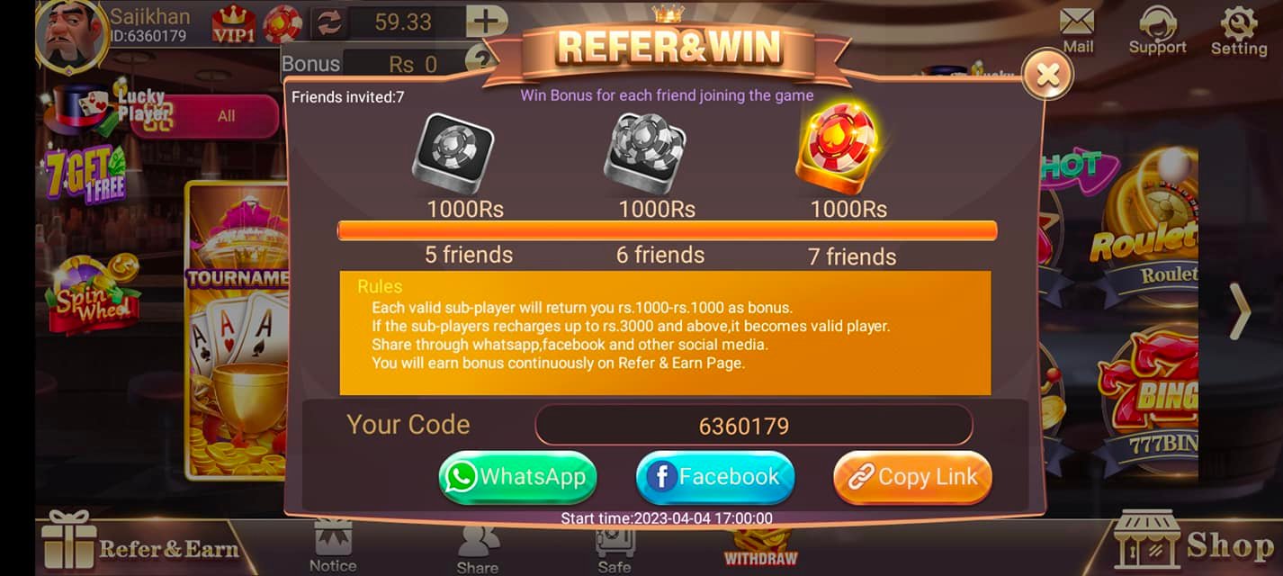 Yalla Rummy includes a VIP Agent Program where you can invite others and earn more. Here’s how it works: