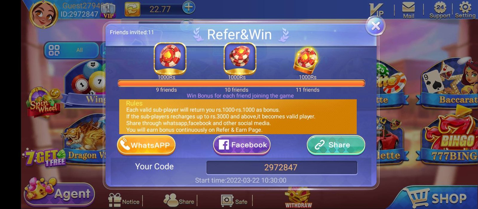 • Refer More Friends: Share your referral code on WhatsApp or Facebook.