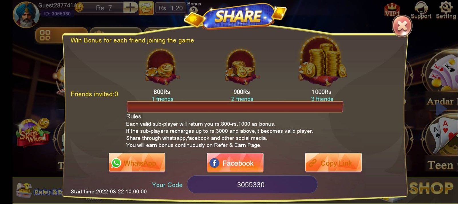 Games like Teen Patti, Poker, or Dragon vs Tiger offer real money rewards. Win games and collect chips, then convert them to money.