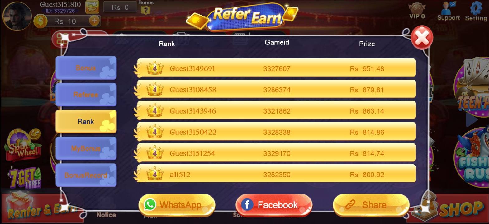 You can also play as a guest, but registration is required to access all features like real cash withdrawals, referral bonuses, and level rewards.